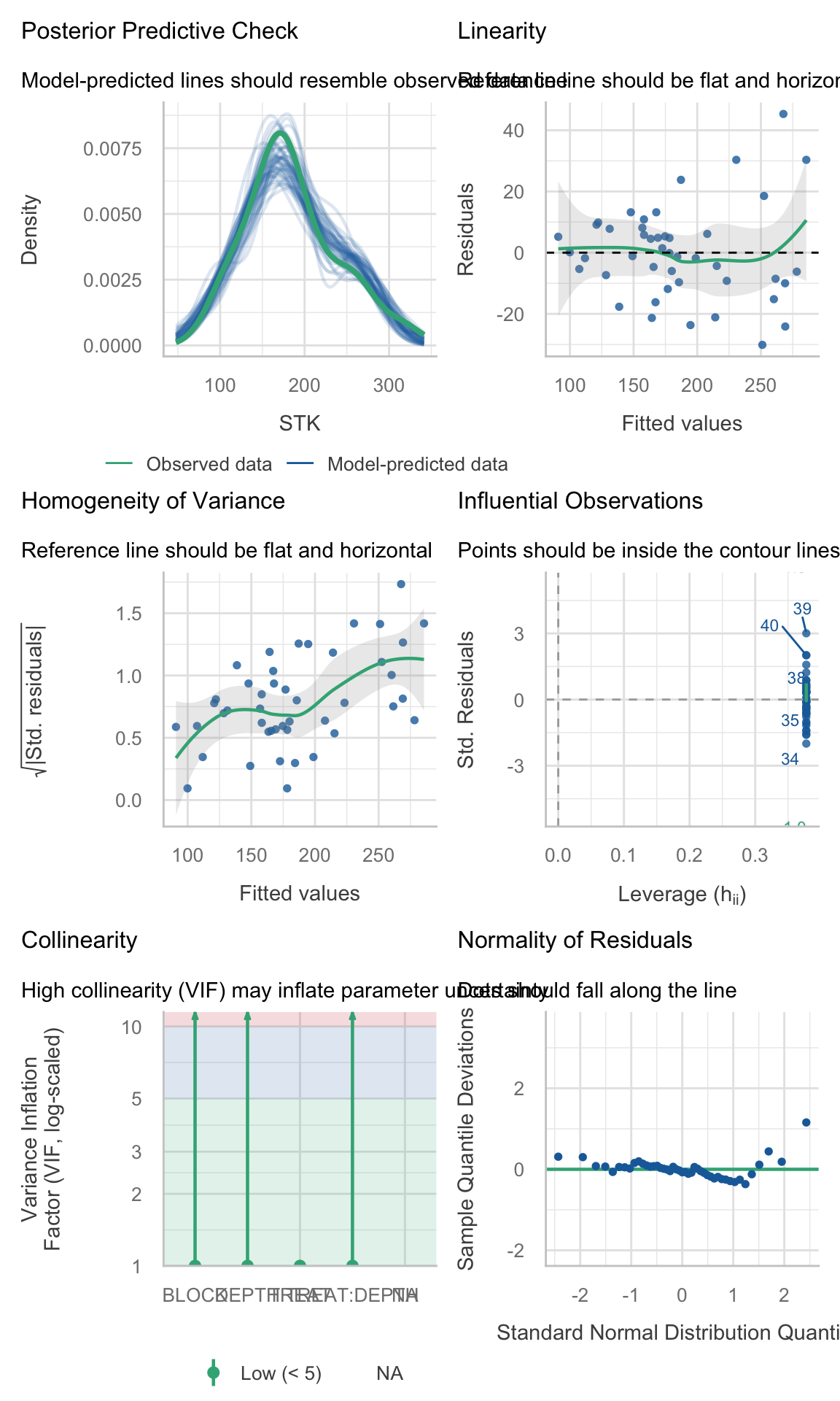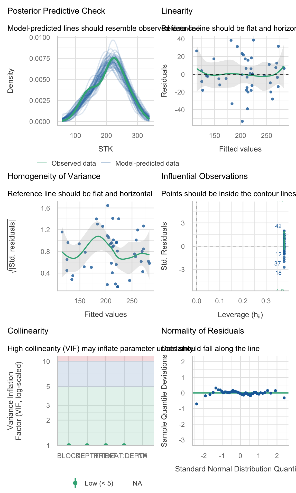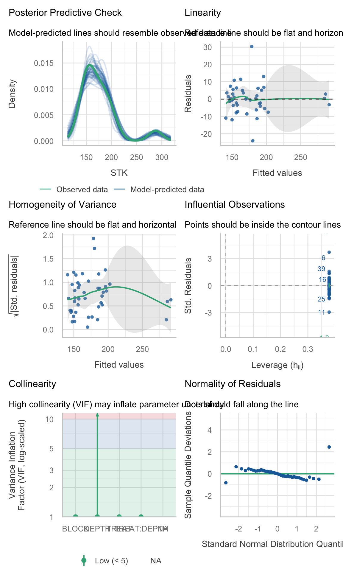 # (REML is fine here; ML refits are only needed for likelihood-based comparisons of fixed effects).