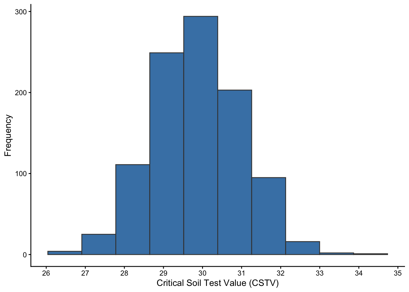 labs(x = "Critical Soil Test Value (CSTV)", y = "Frequency") +