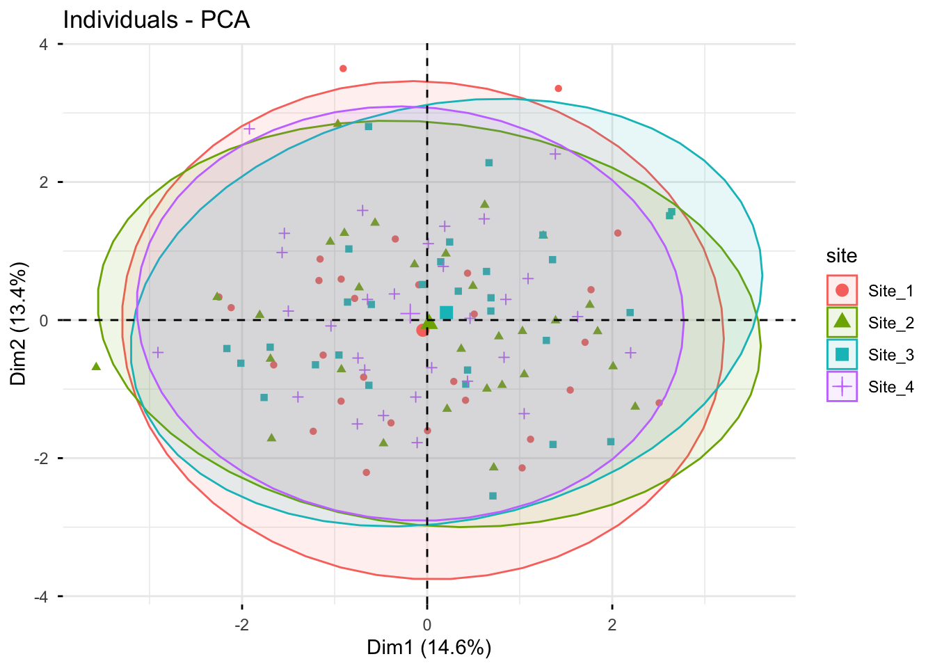 habillage = "site", # coloring individuals by "site" can help reveal group patterns