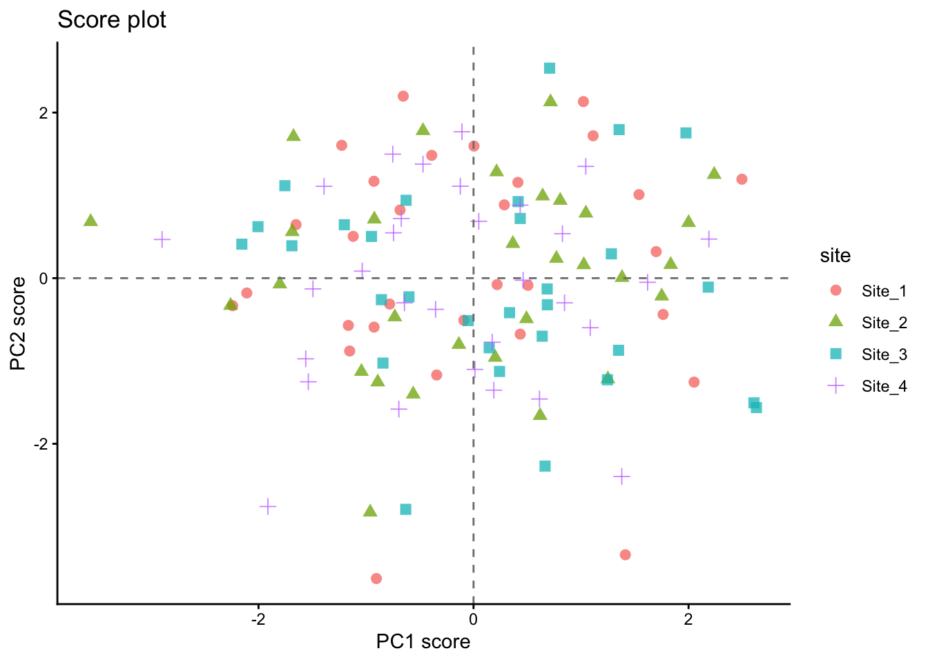 # Individuals (scores), colored by the supplementary variable "site"