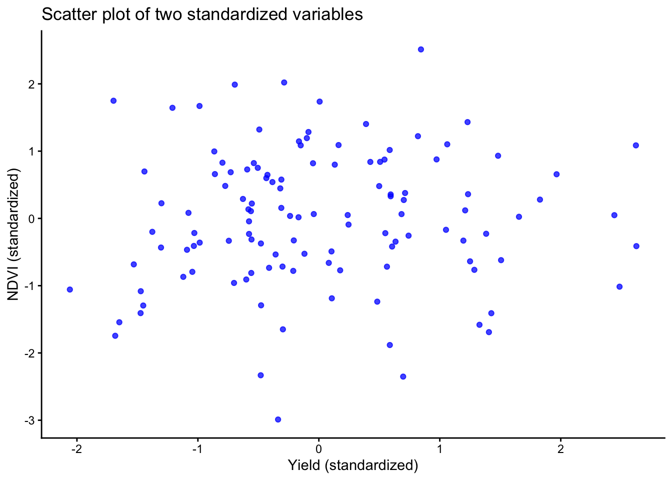 labs(title = "Scatter plot of two standardized variables",